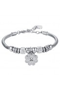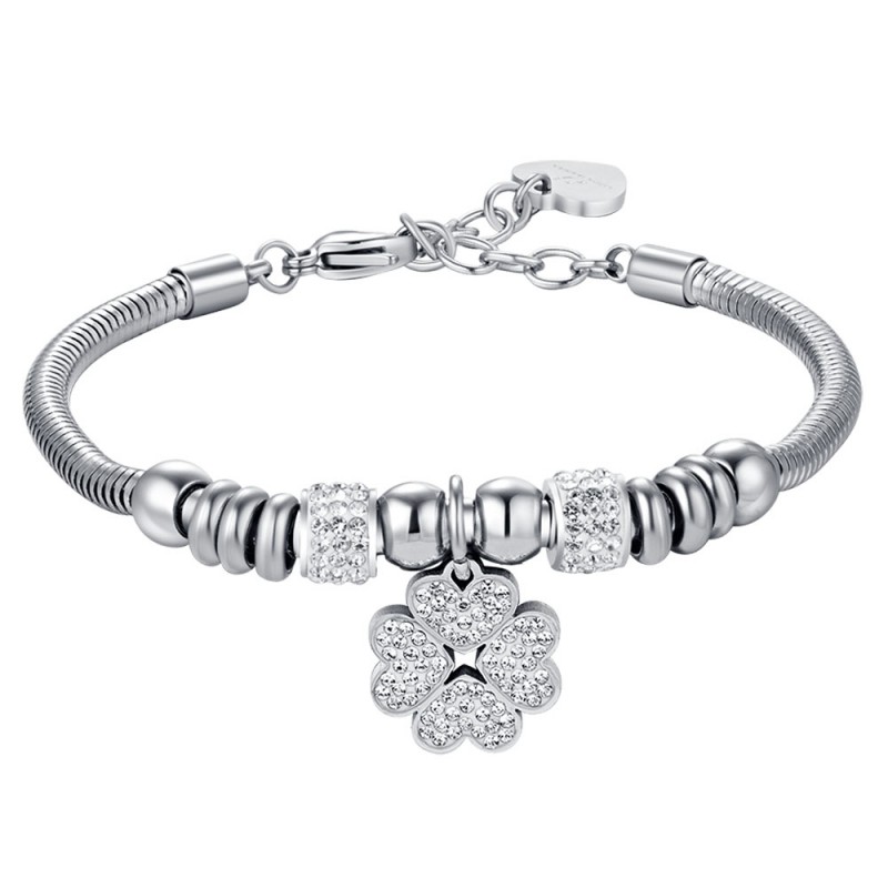 Bracciale Donna in acciaio anallergico con charm a forma di quadrifoglio con cristalli bianchi