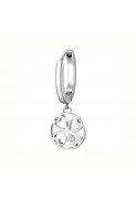 Orecchino singolo a cerchio realizzato in acciaio 316L con pendente a forma di quadrifoglio e cristallo