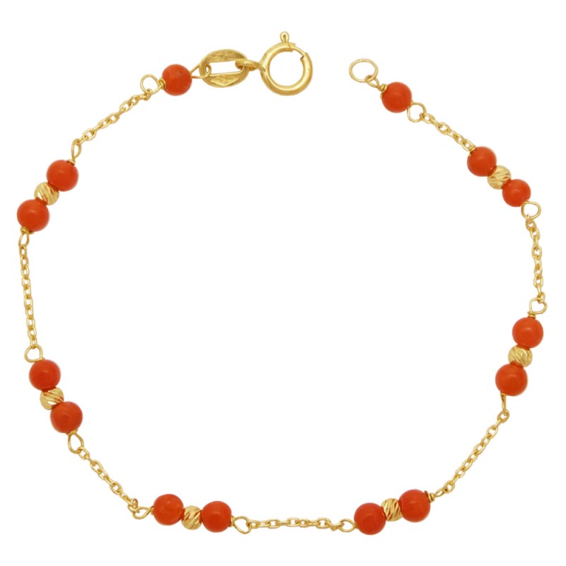 Bracciale neonato in Oro giallo 18Kt di gr 0,87 con coralli rossi portafortuna del diametro di 2,5 mm