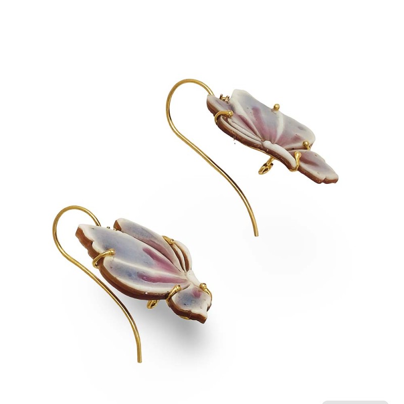 Orecchini a forma di farfalla, realizzati con cammeo in conchiglia inciso a mano e dipinto a mano, cristallo incastonato