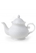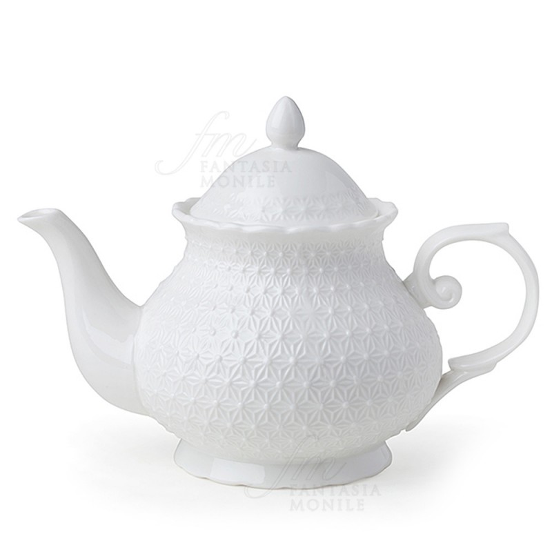 Teiera in porcellana bianca lavorata a fiori con coperchio