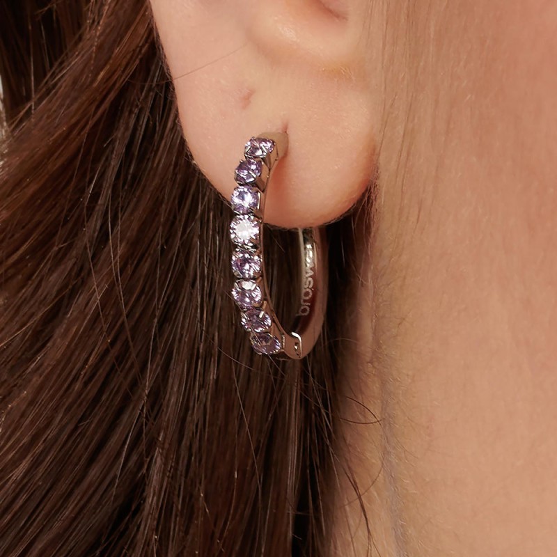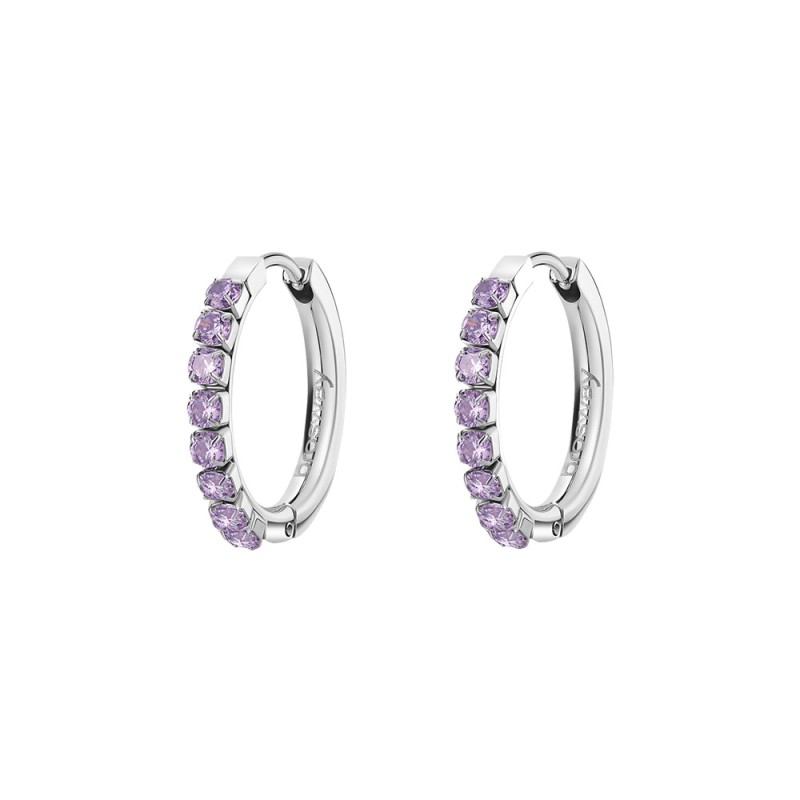 Orecchini a cerchietto piccoli in acciaio 304 e cubic zirconia colore amethyst