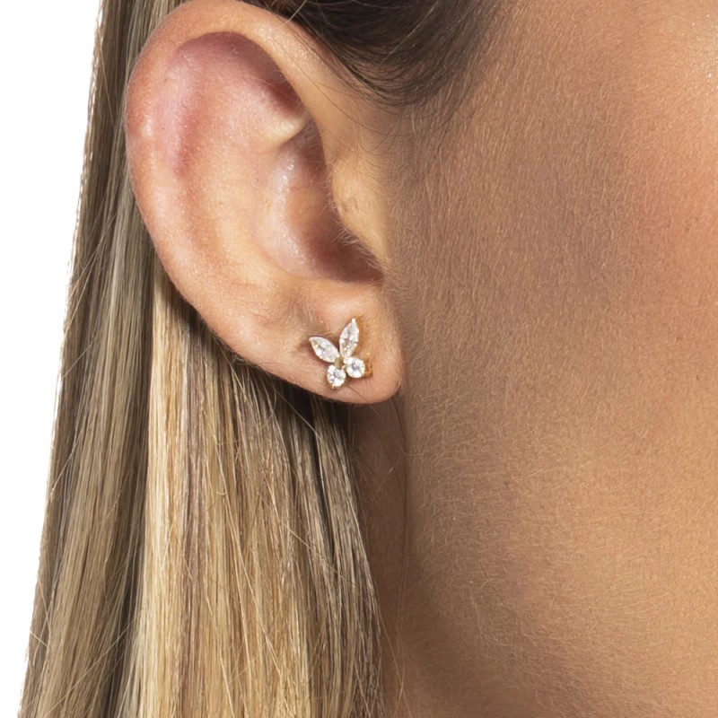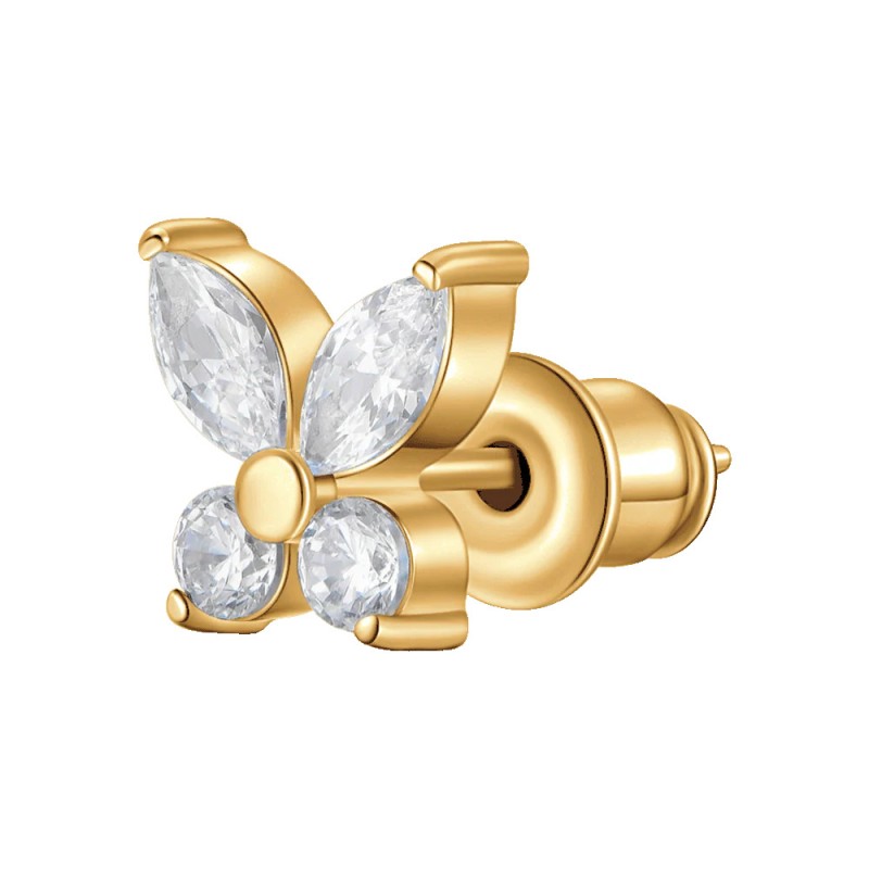 Mono orecchino in Acciaio anallergico dorato con farfalla con ali a zircone bianco