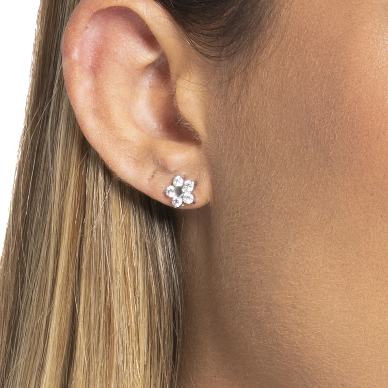 Mono orecchino in Acciaio anallergico con fiore e zircone bianco