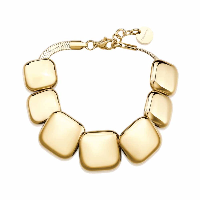 Bracciale in Acciaio 316L anallergico e finitura pvd oro 14K con piastre squadrato