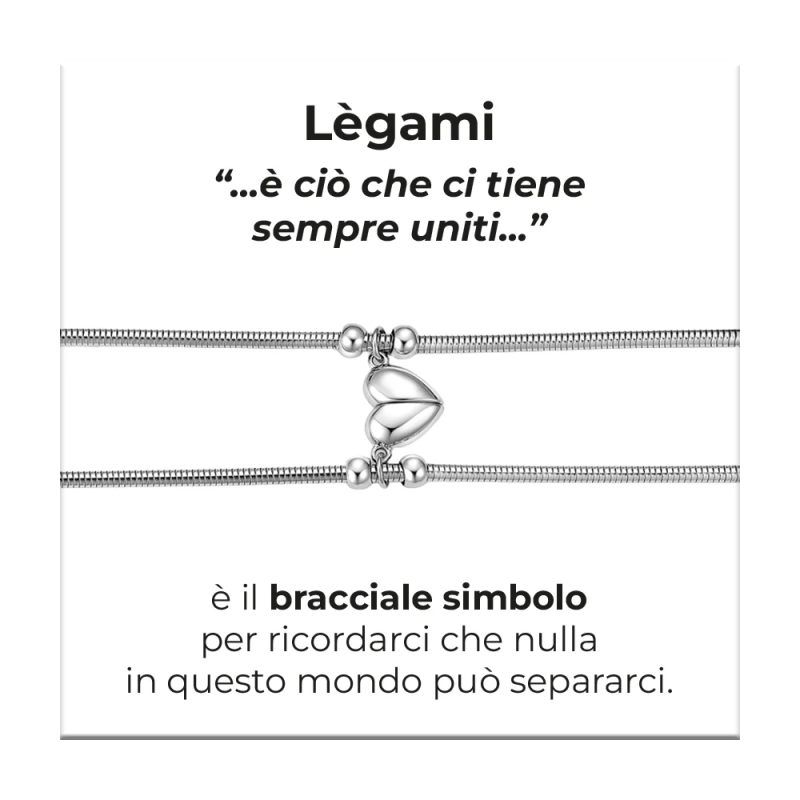 Celebriamo i legami veri e sinceri con la coppia di bracciali in acciaio con cuore calamitato della linea LEGAMI.