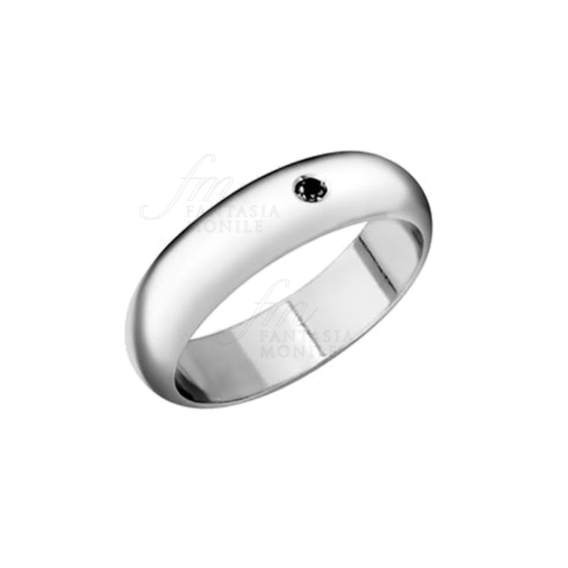 Fede in Argento 925 color rodio con diamante naturale nero di ct 0,01 incastonato nel centro