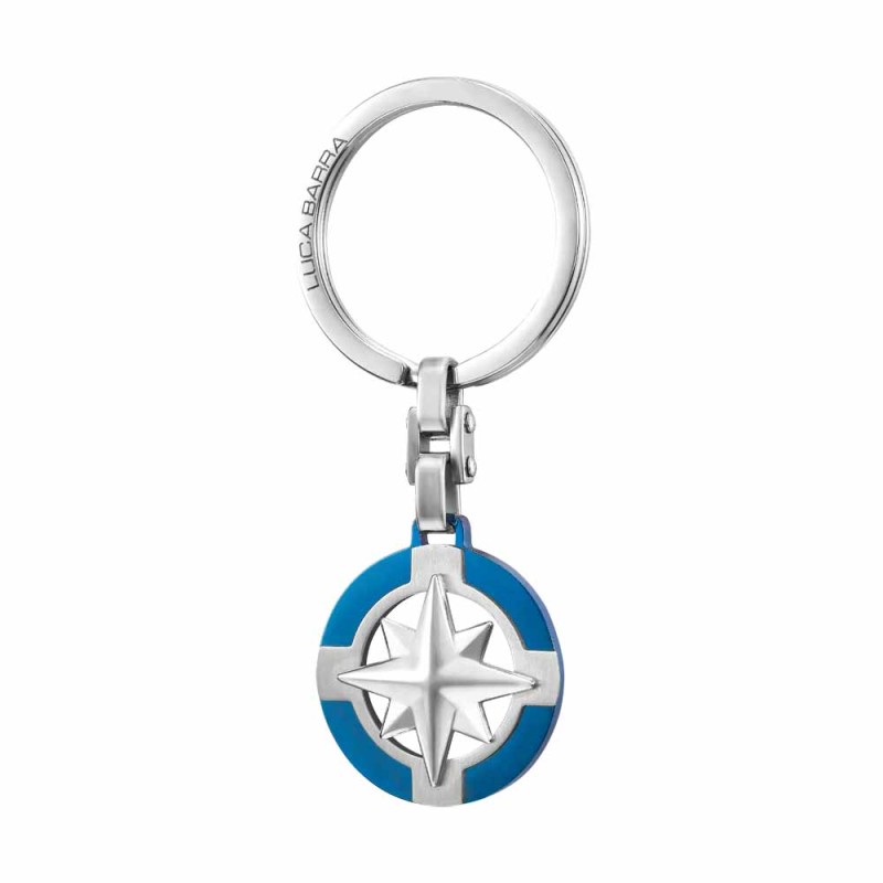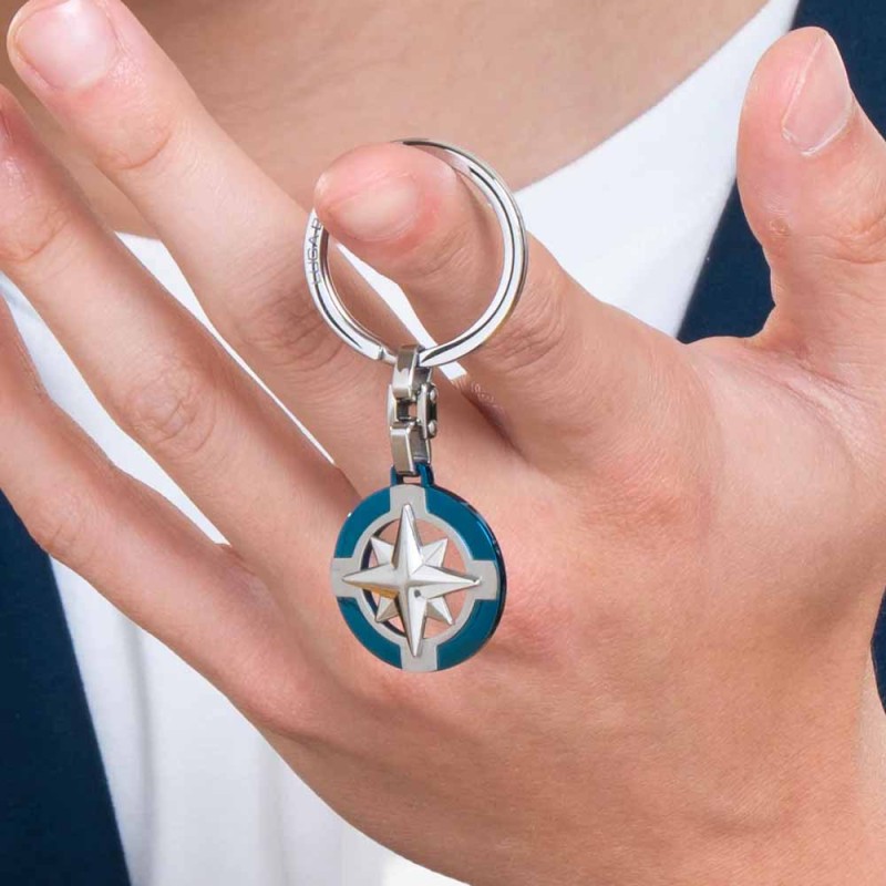 Portachiavi in Acciaio anallergico con rosa dei venti IP blu
