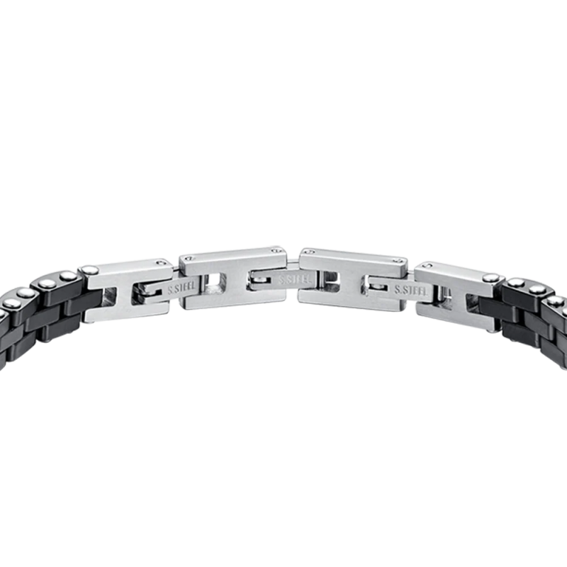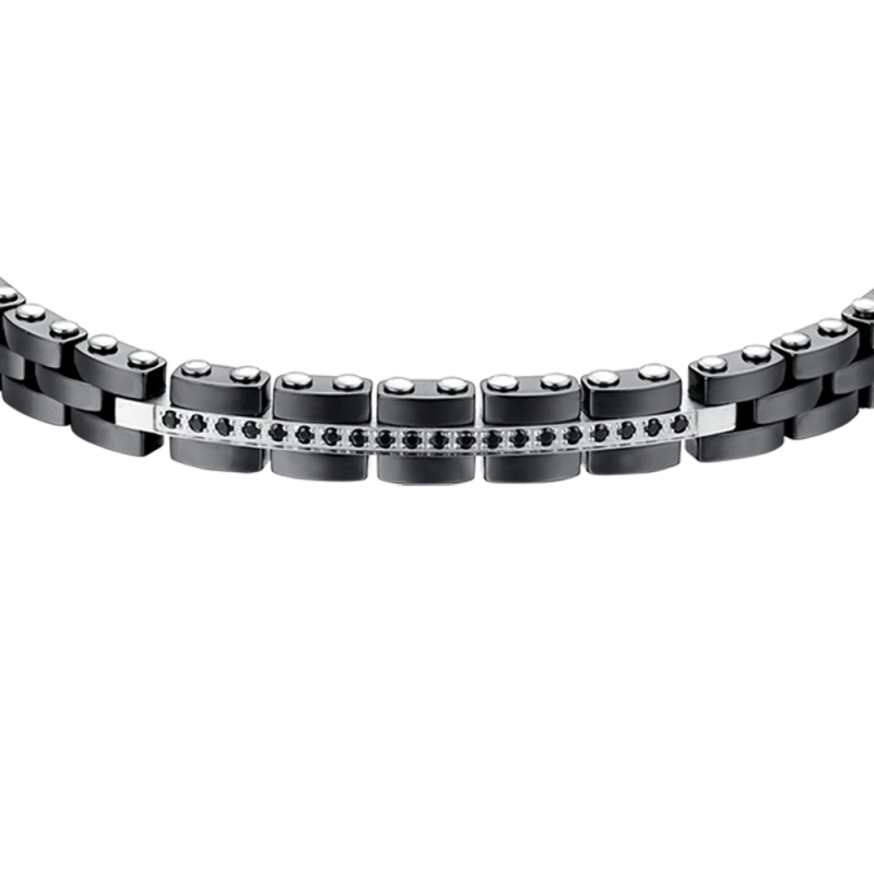Bracciale in Acciaio anallergico con elementi in ceramica nera e cristalli neri