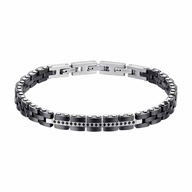 Questo Bracciale da Uomo in Acciaio e Ceramica Nera con Cristalli Neri è un'opera d'arte di design contemporaneo. Il suo stile audace e distintivo lo rende un accessorio ideale per chi cerca un tocco di eleganza ed eccentricità nel suo abbigliamento. La combinazione di acciaio e ceramica nera crea un contrasto affascinante, mentre i cristalli neri catturano la luce con intensità. Questa combinazione di materiali e dettagli aggiunge un tocco di mistero ed eleganza al bracciale.