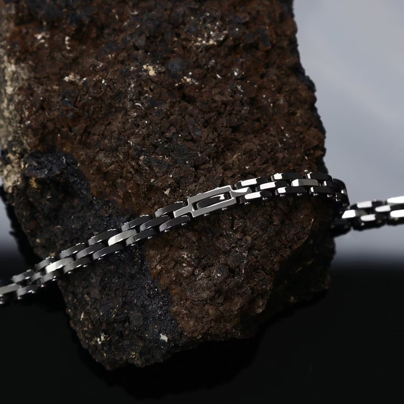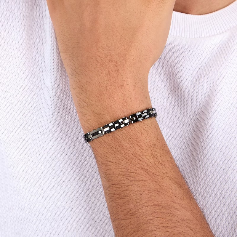 Bracciale Uomo in Acciaio 316L silver e ceramica nera