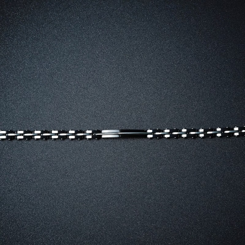 Bracciale Uomo in Acciaio 316L silver e ceramica nera con targa centrale